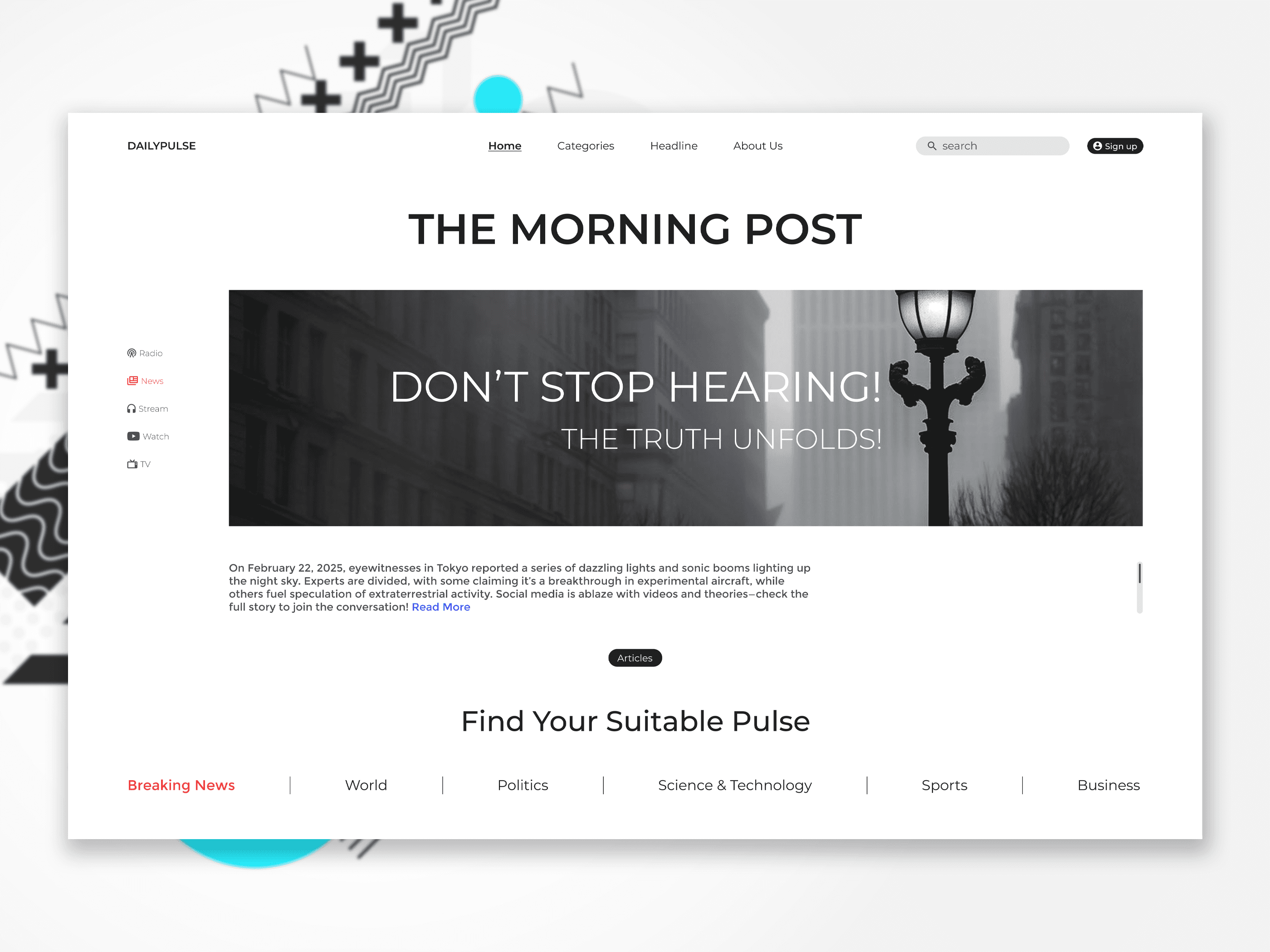 Every design choice, from spacing to typography and interactive elements, was made with the user’s reading journey in mind. My goal was to create a visually striking yet simple interface that enhances readability and user engagement. By embracing modern minimalist principles, I was able to design a news platform that not only looks sleek and professional but also provides an intuitive and enjoyable browsing experience.